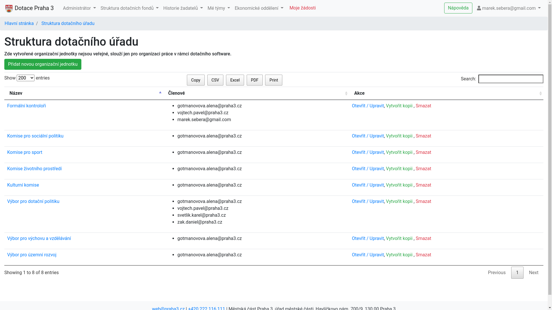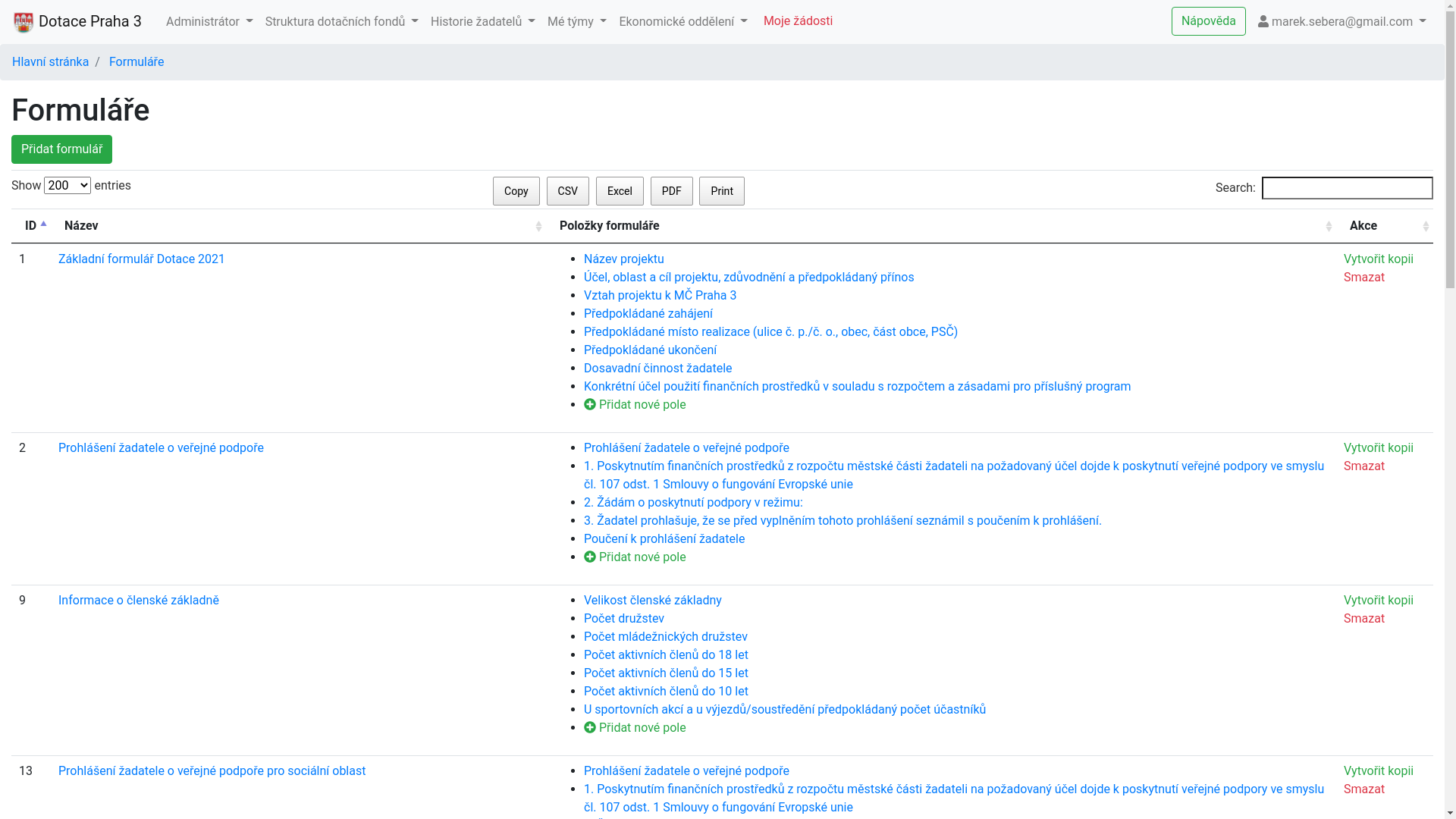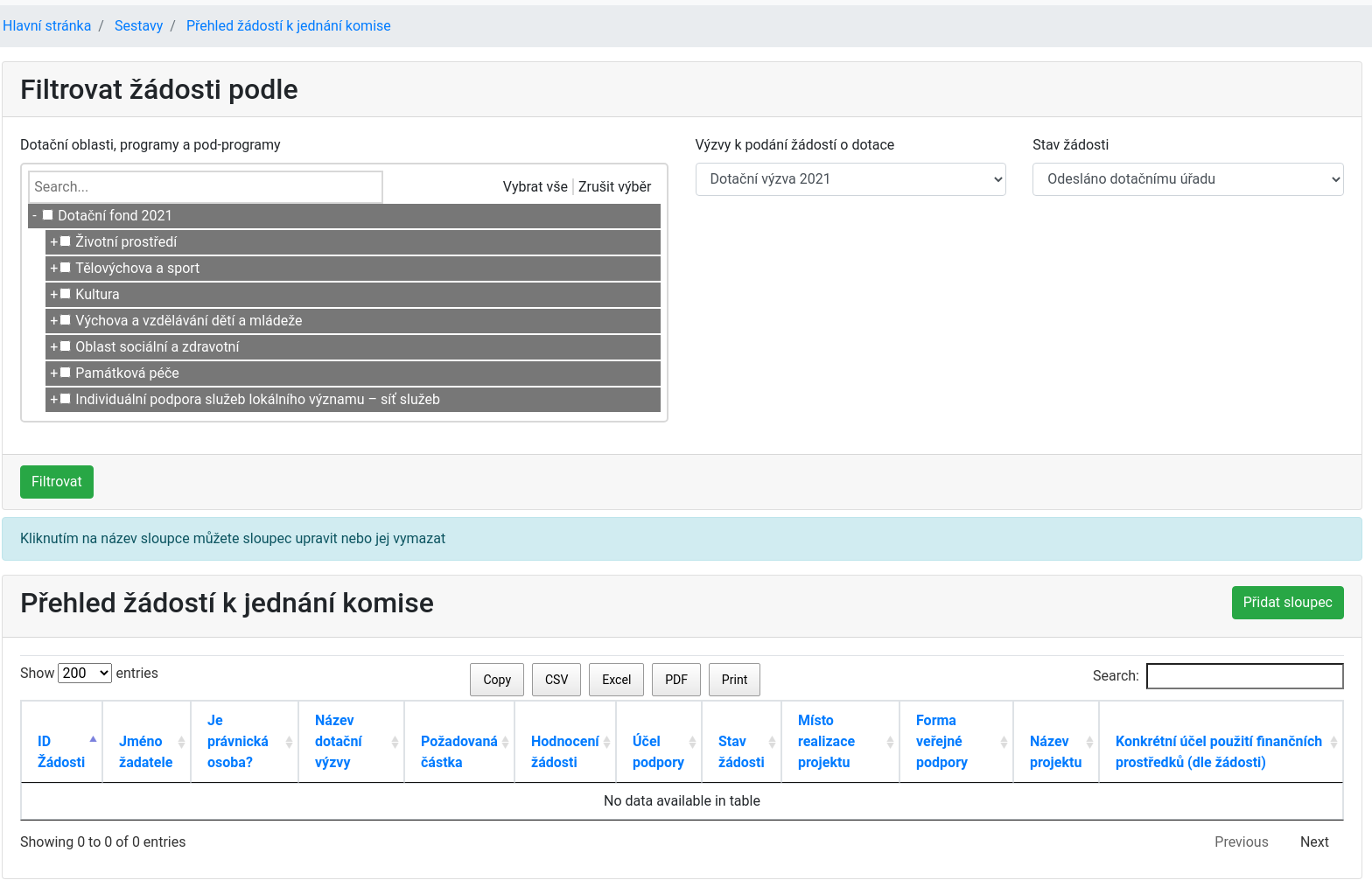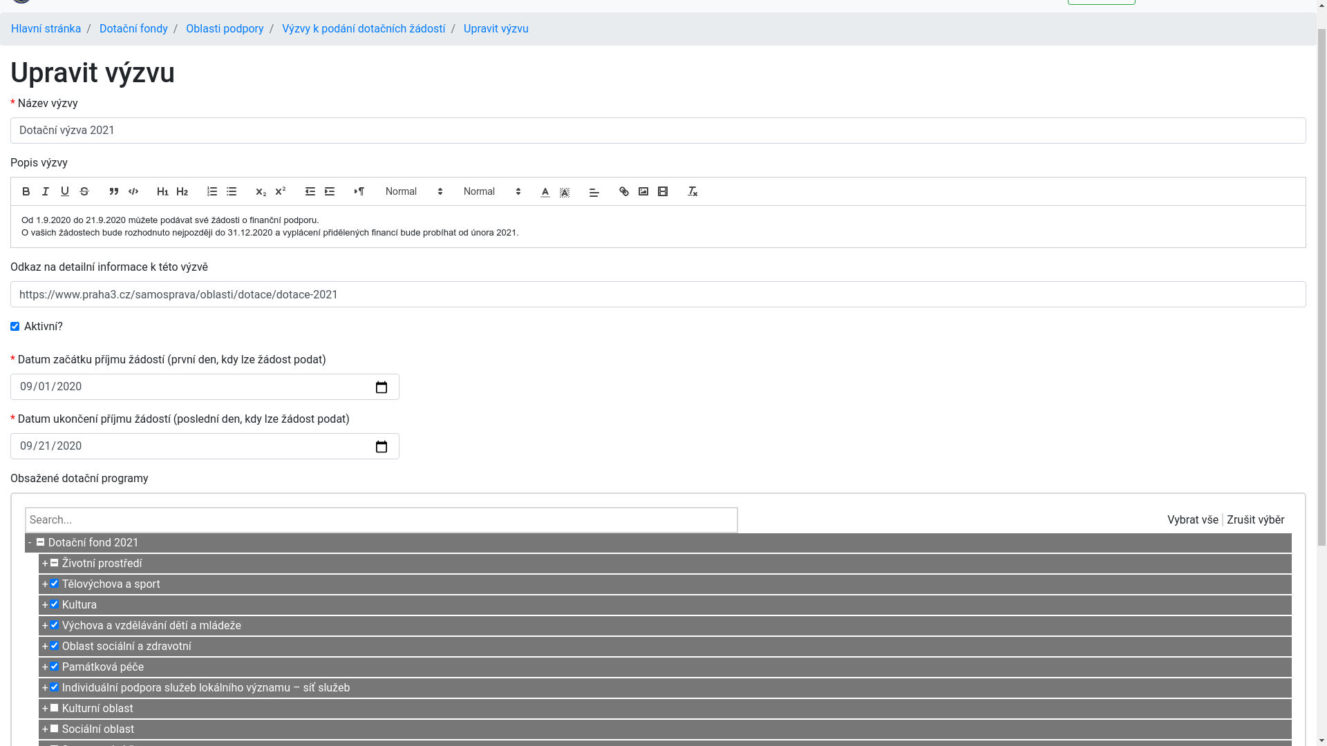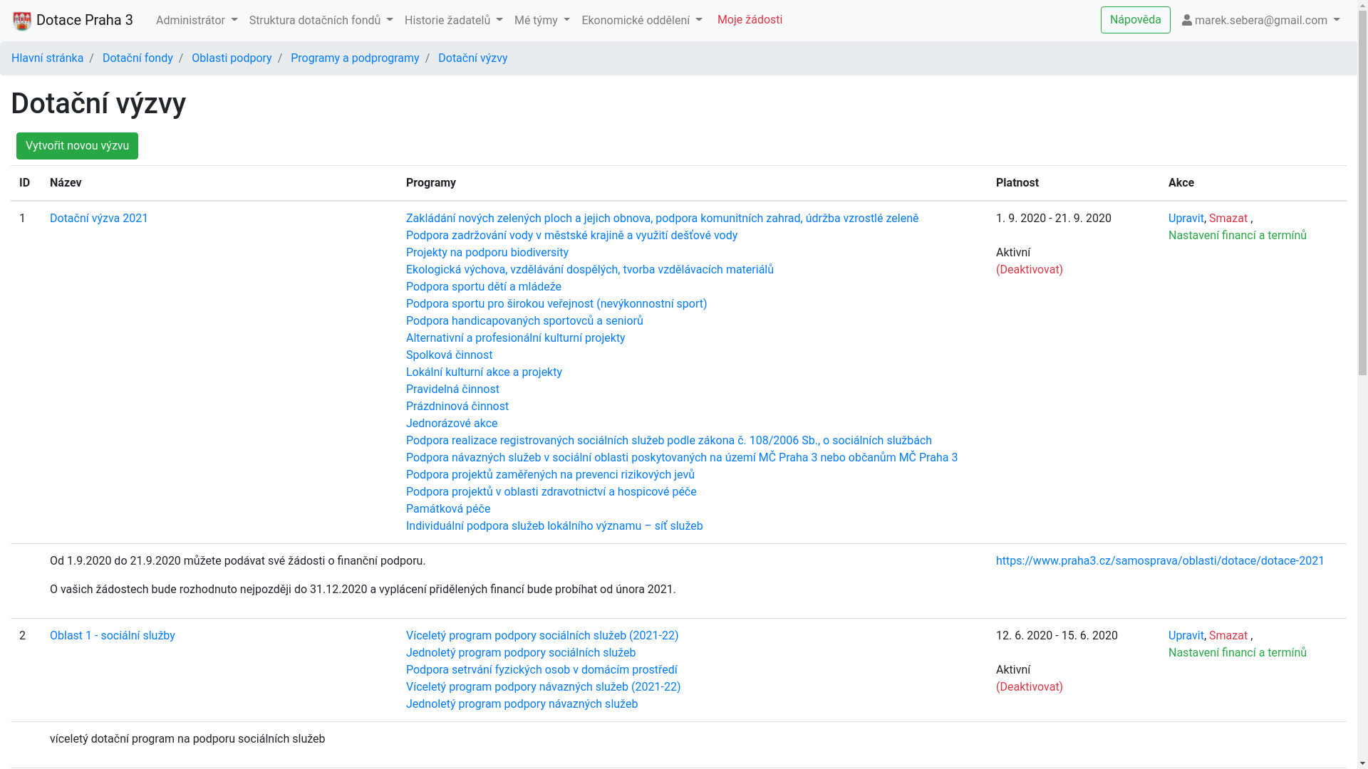 • Možnost zveřejní seznamu všech poskytnutých dotací.
